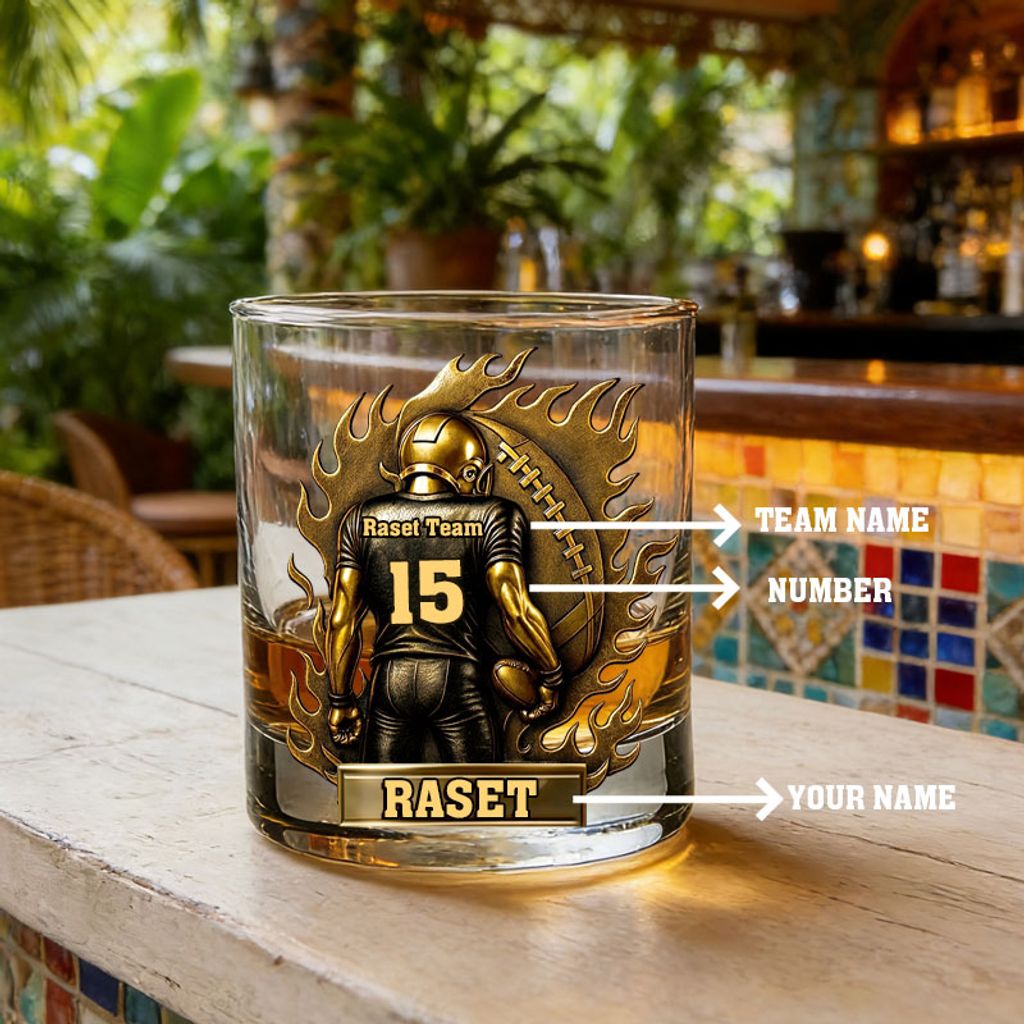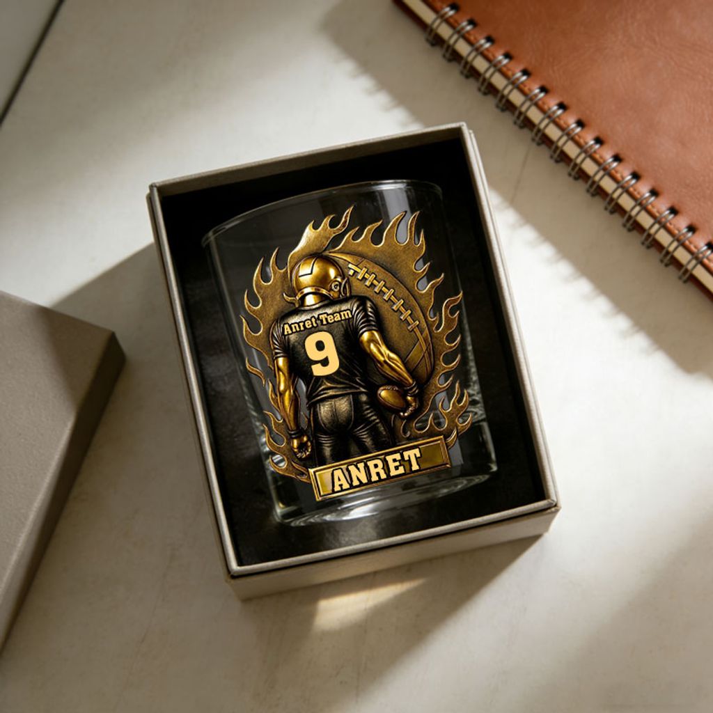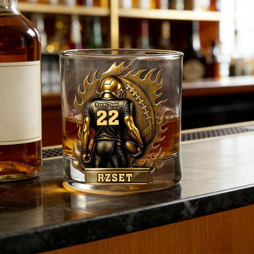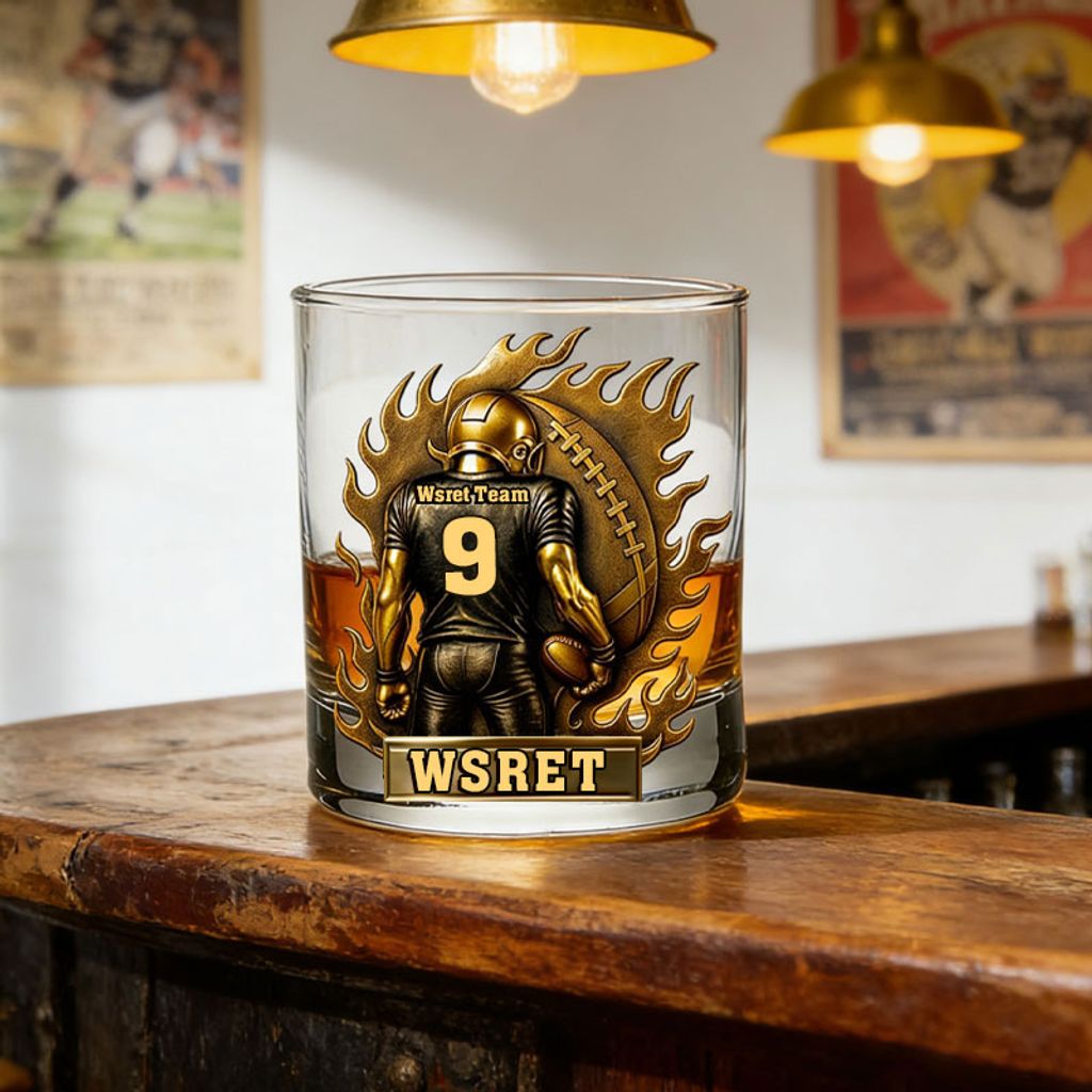Whether you're watching the game, celebrating a victory, or enjoying a drink with friends, this 11-ounce personalized whiskey glass will make you feel like you're on the field: "Go team! Defend the glory!"