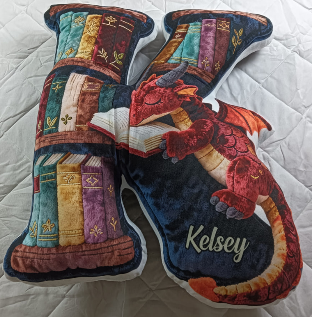 Book Dragon Alphabet Initial Letters Pillow, Personalized Gifts For Book Lovers