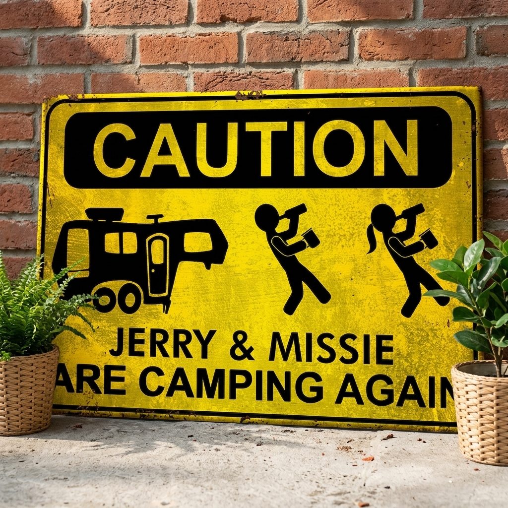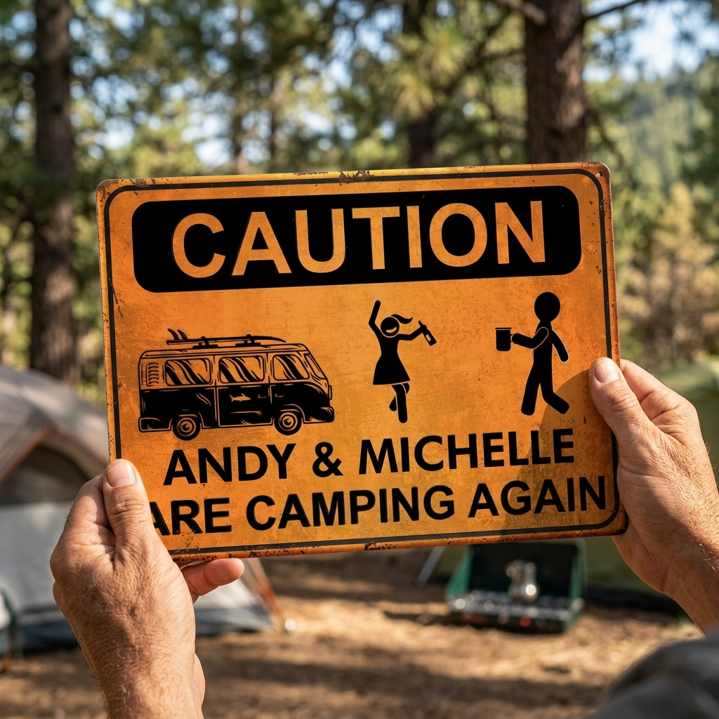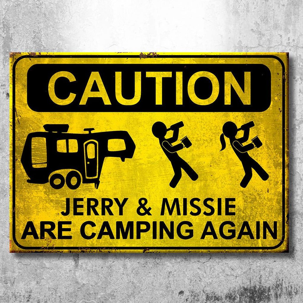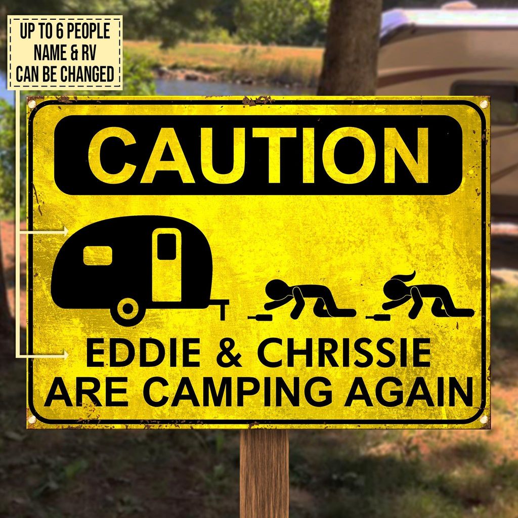 Camping Caution - Personalized Camping Metal Sign