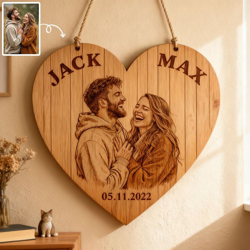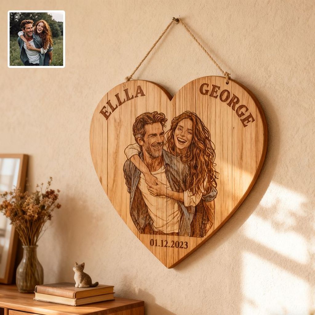 Turn a heartfelt photo into a timeless wooden keepsake. This custom couple plaque transforms your memories into a warm, natural piece of decor that matches any lifestyle or home aesthetic.
