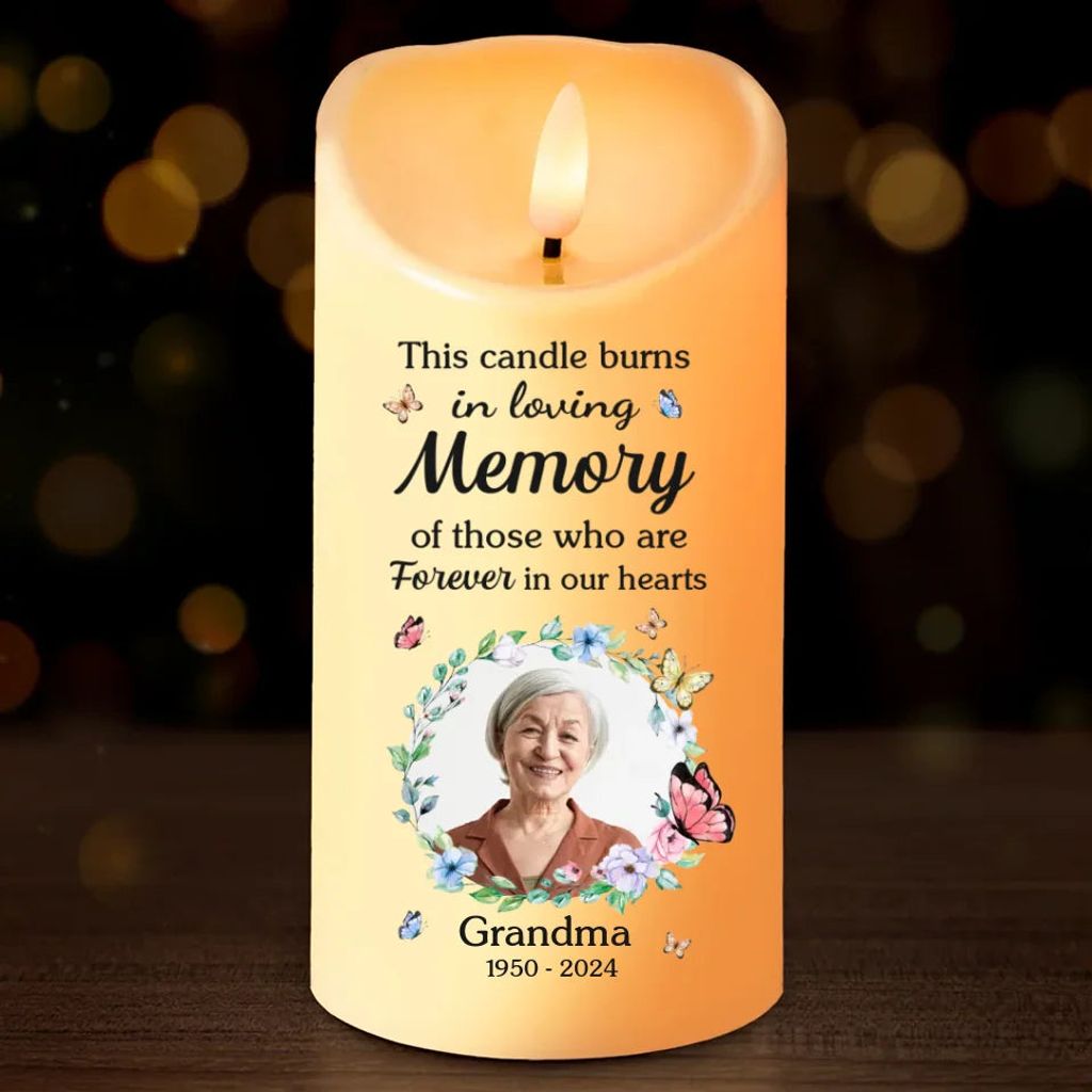 Custom Photo This Candle Burns In Loving Memory - Memorial Personalized Custom LED Candle - Christmas Gift, Sympathy Gift For Family Members