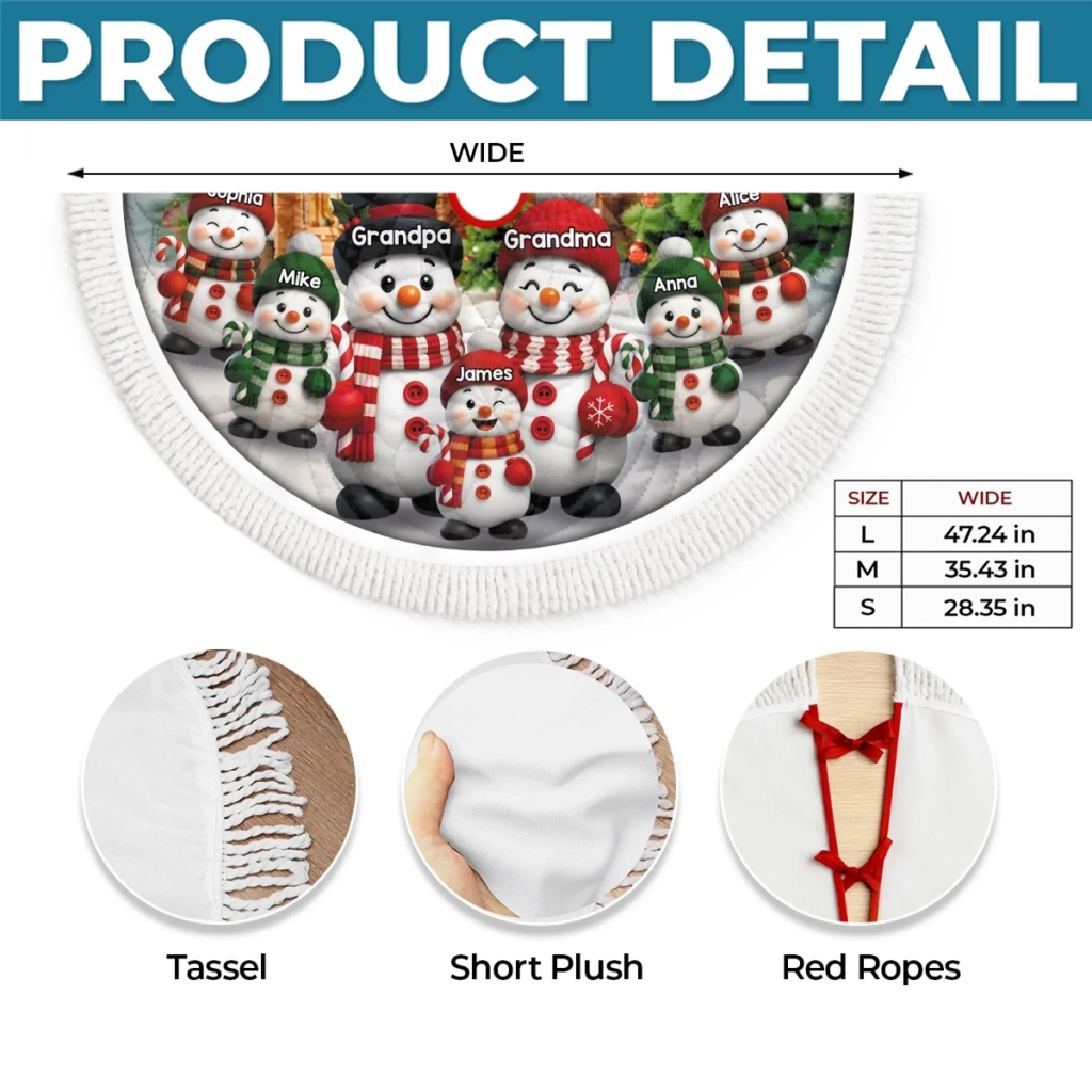 Custom Snowman Tree Skirt - Personalized Christmas Birthday Gifts For Grandma, Grandpa, Grandparents - Love Wrapped In Holiday Magic