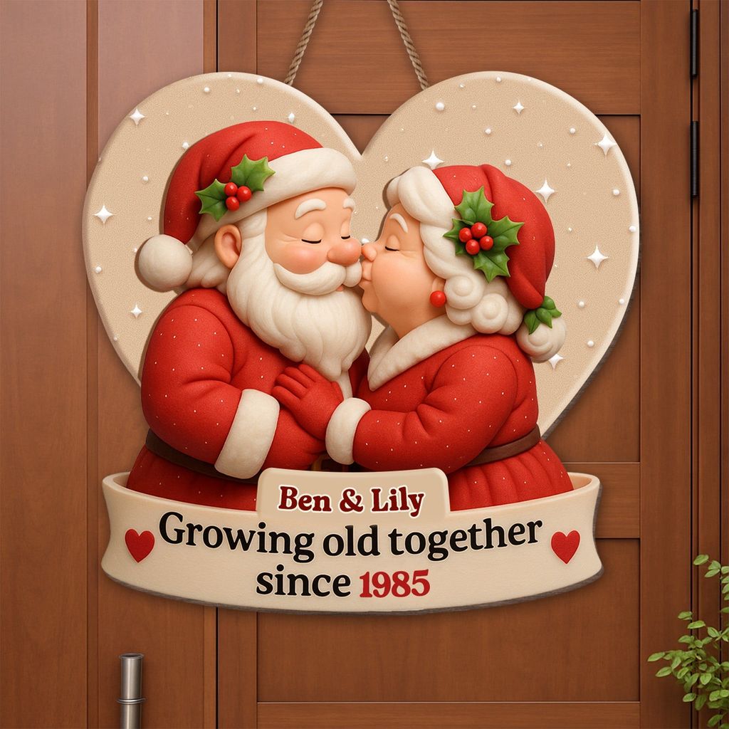 - 1 x Growing Old Together, Heart-Shaped Santa Claus Design - Personalized Custom Shaped Wood Sign