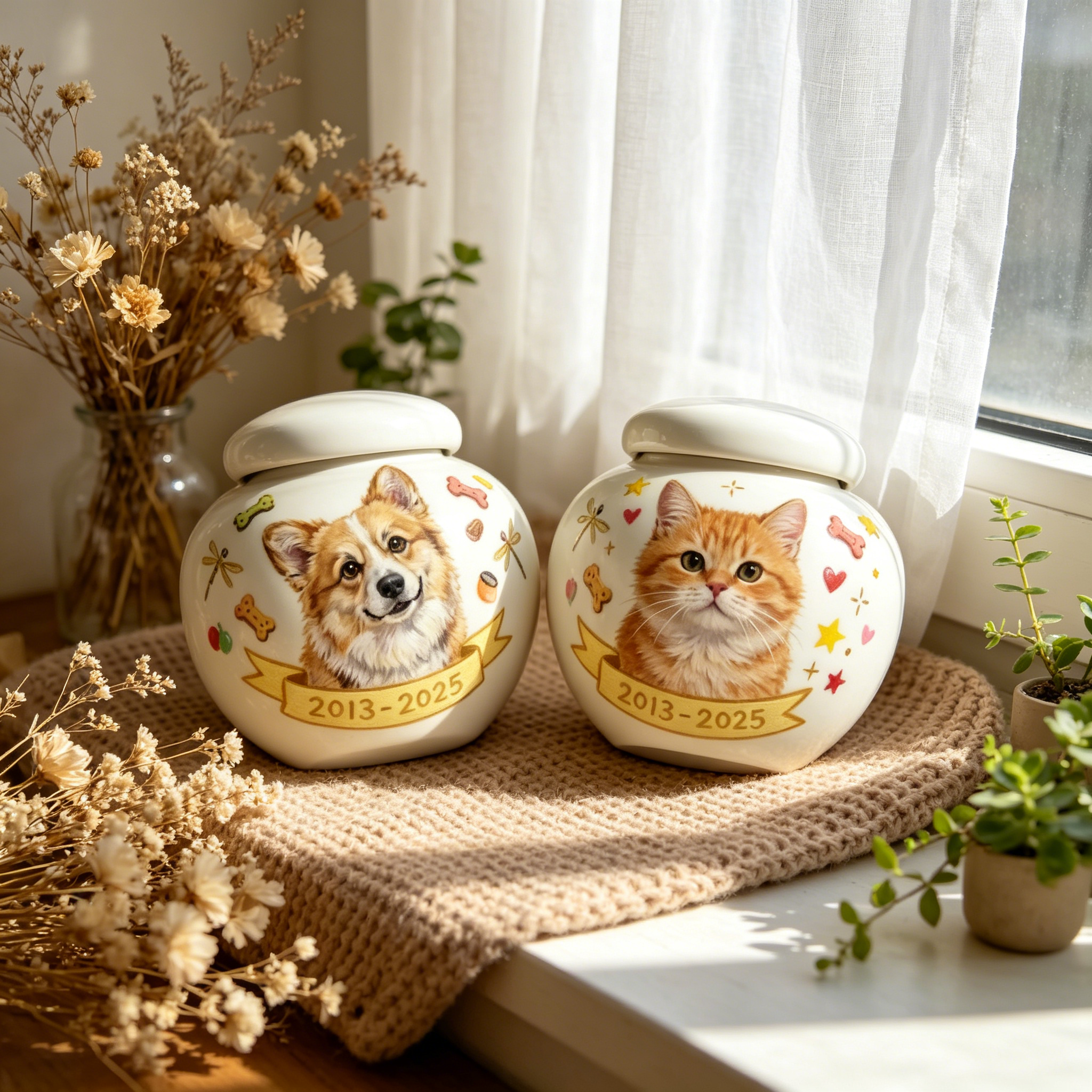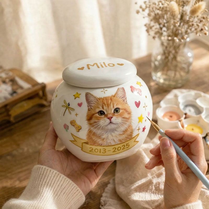Handcrafted Custom Pet Urn — Hand-Painted Personalized Memorial Keepsake — Suitable for Cats and Small Dogs