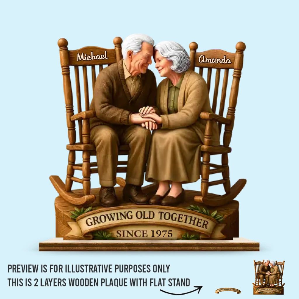 Growing Old Together - Personalised Wooden Couple Plaque with Stand