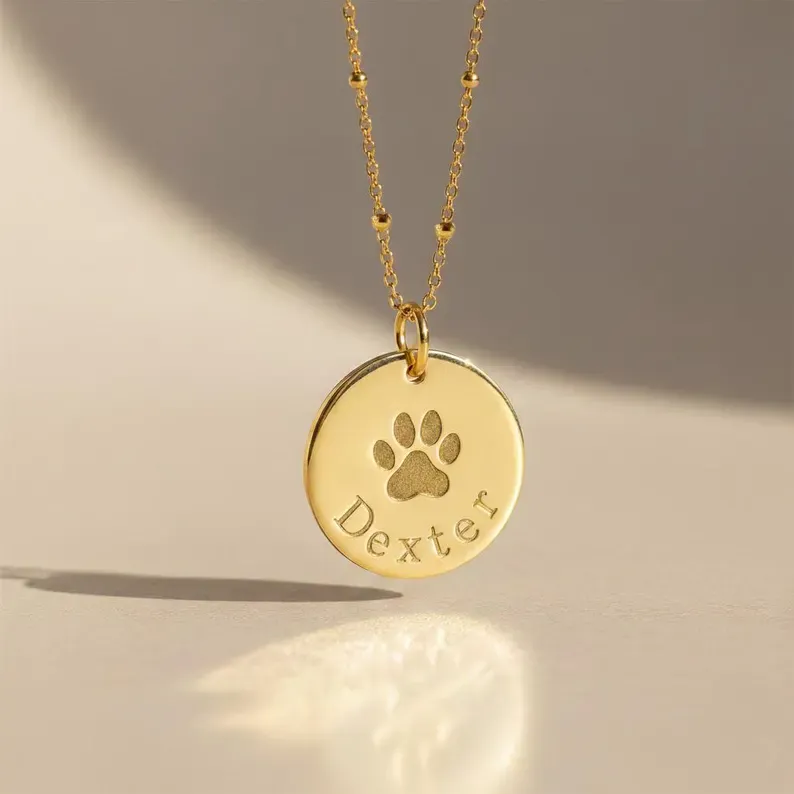 Remember your beloved pet with our custom-made paw print disc necklace! This exquisite pet jewelry, engraved with your pet's unique paw print and name, is a heartfelt tribute to your deep affection, allowing you to feel its presence every day.