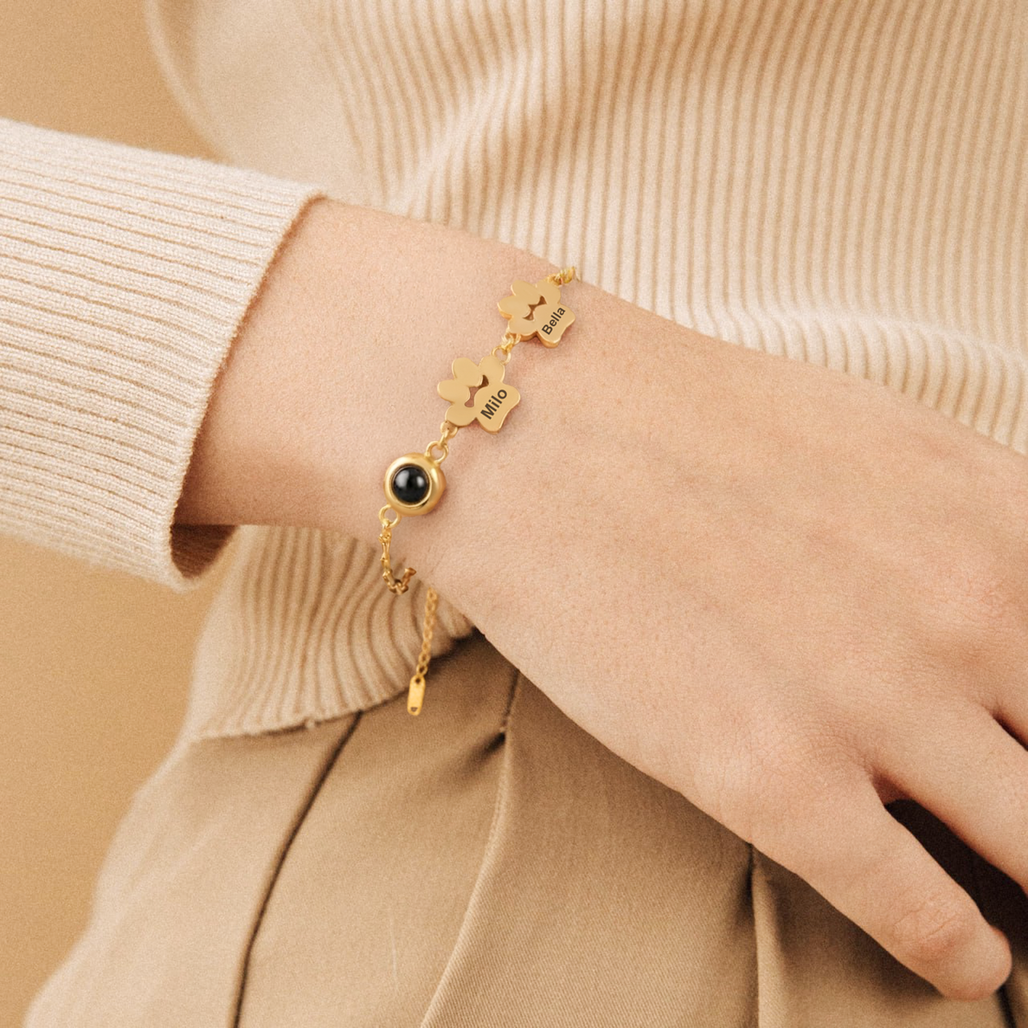 This Personalised Paw Print Bracelet with Hidden Photo is designed to help you carry your beloved pet with you, wherever life takes you.Each paw charm can be engraved with your pet’s name, while the hidden photo inside allows you to keep a precious memory close at all times. Whether you’re celebrating the joy of having a pet or honoring one who will always live in your heart, this bracelet tells a deeply personal story.