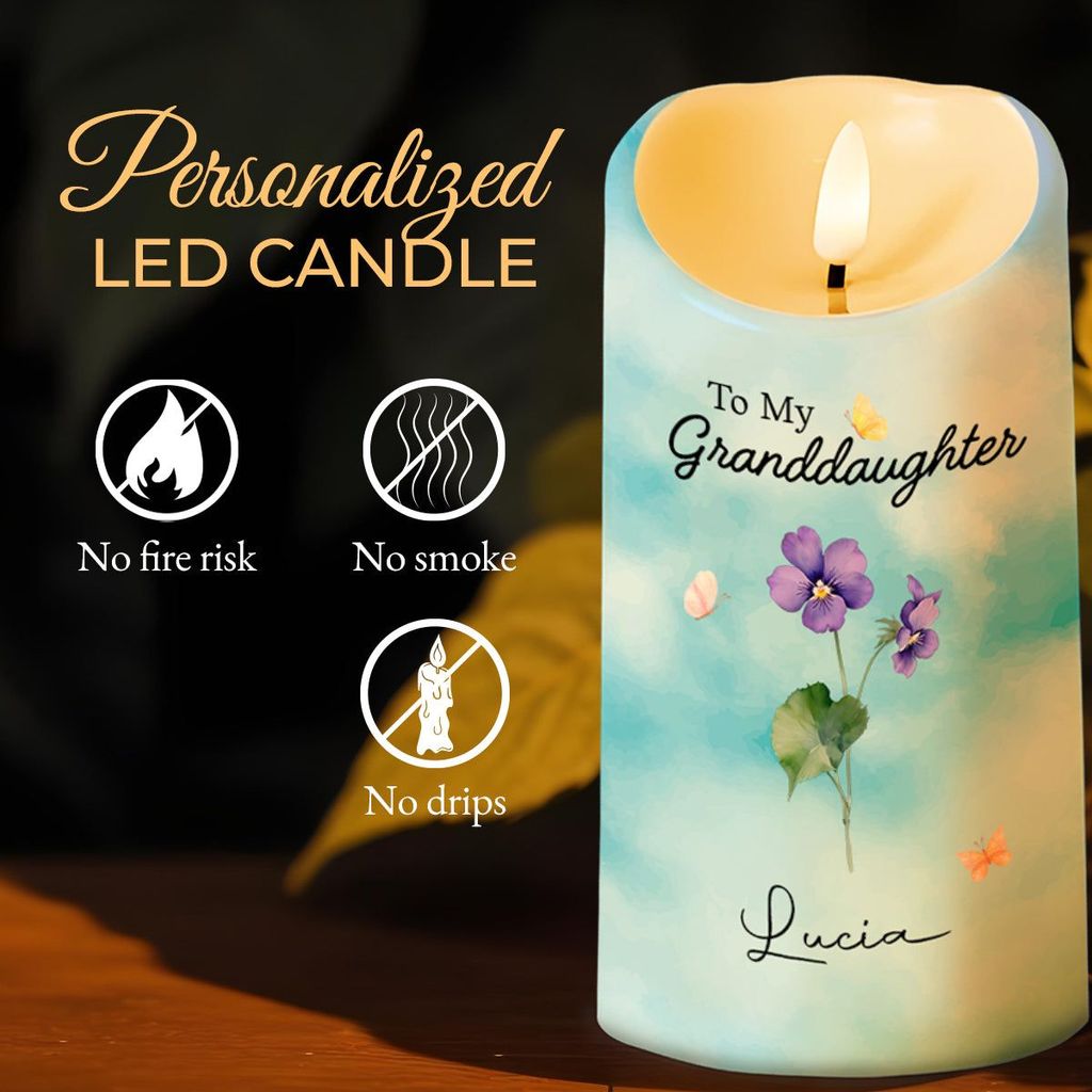 To My Granddaughter Crown And Flowers Quote - Personalized Custom LED Candle