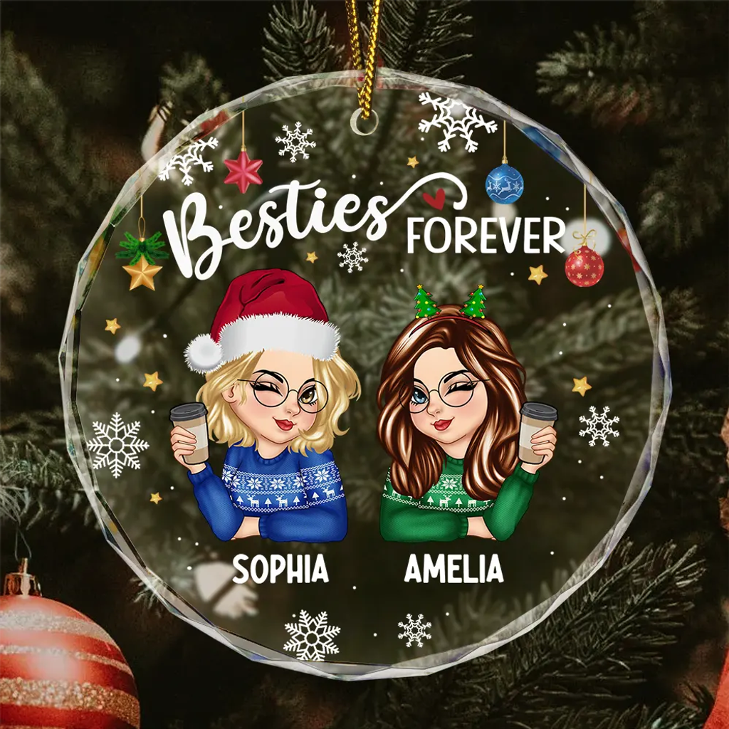 - 1 x Besties Forever Christmas - Personalized Circle Glass Ornament