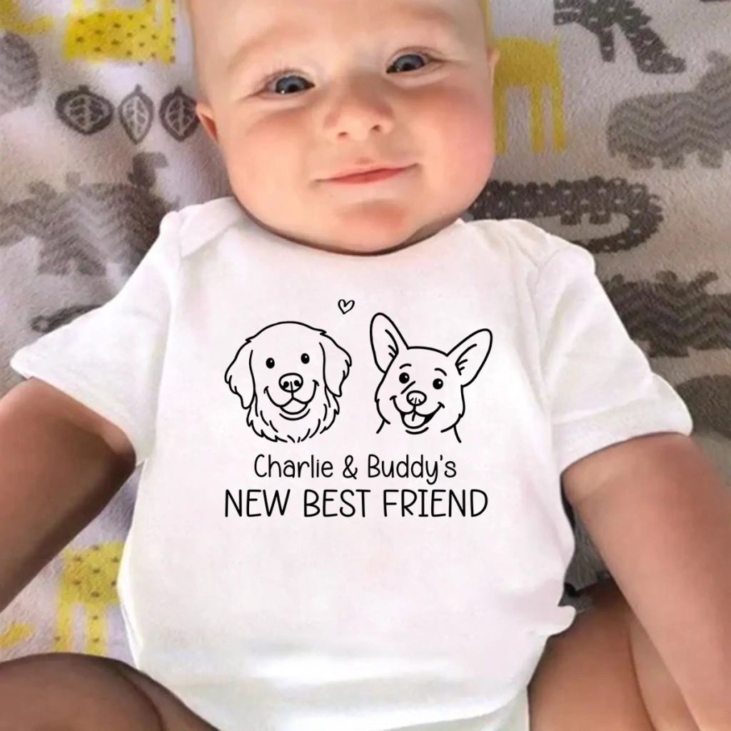 Whether you’re looking for a baby shower gift, a newborn keepsake, or a fun surprise for pet-loving families, this onesie combines cuteness and practicality. Ideal for baby girls, baby boys, or toddlers, it’s perfect for everyday wear while becoming a cherished memory of your baby’s first year. Wrap your little one in love, comfort, and personality – customize your baby’s first onesie and create memories that last a lifetime.