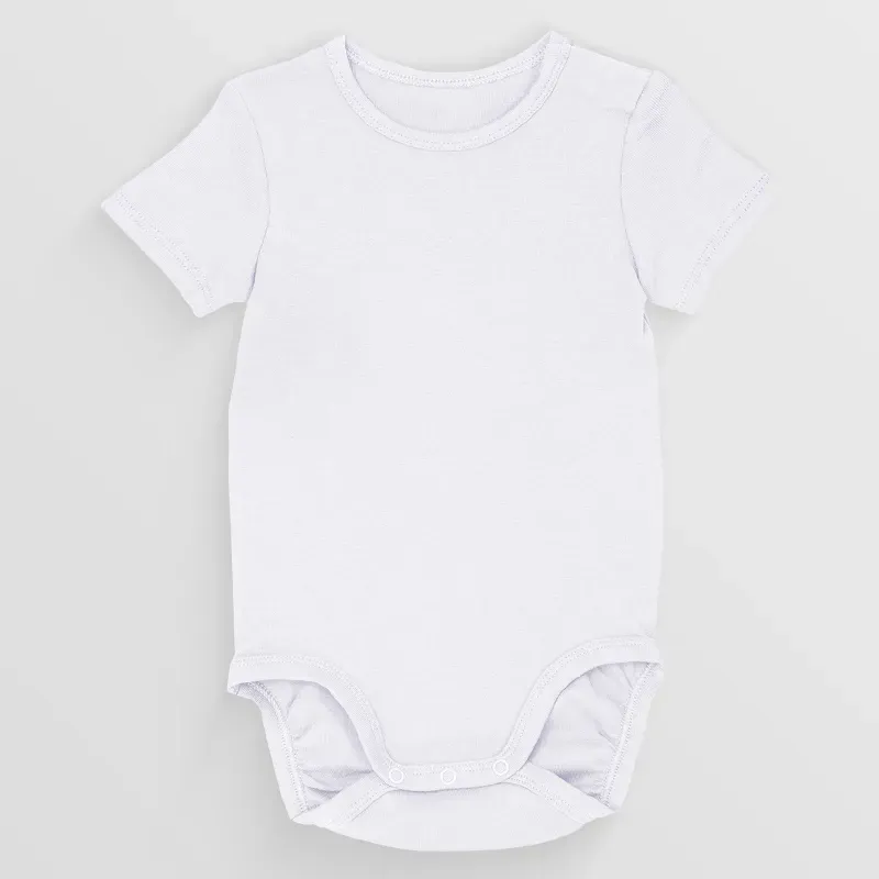 • Details: Short sleeves, bottom popper fastening. Collar, cuff and leg binding.