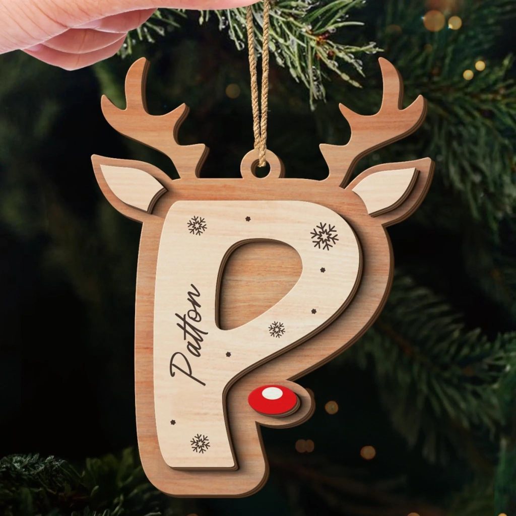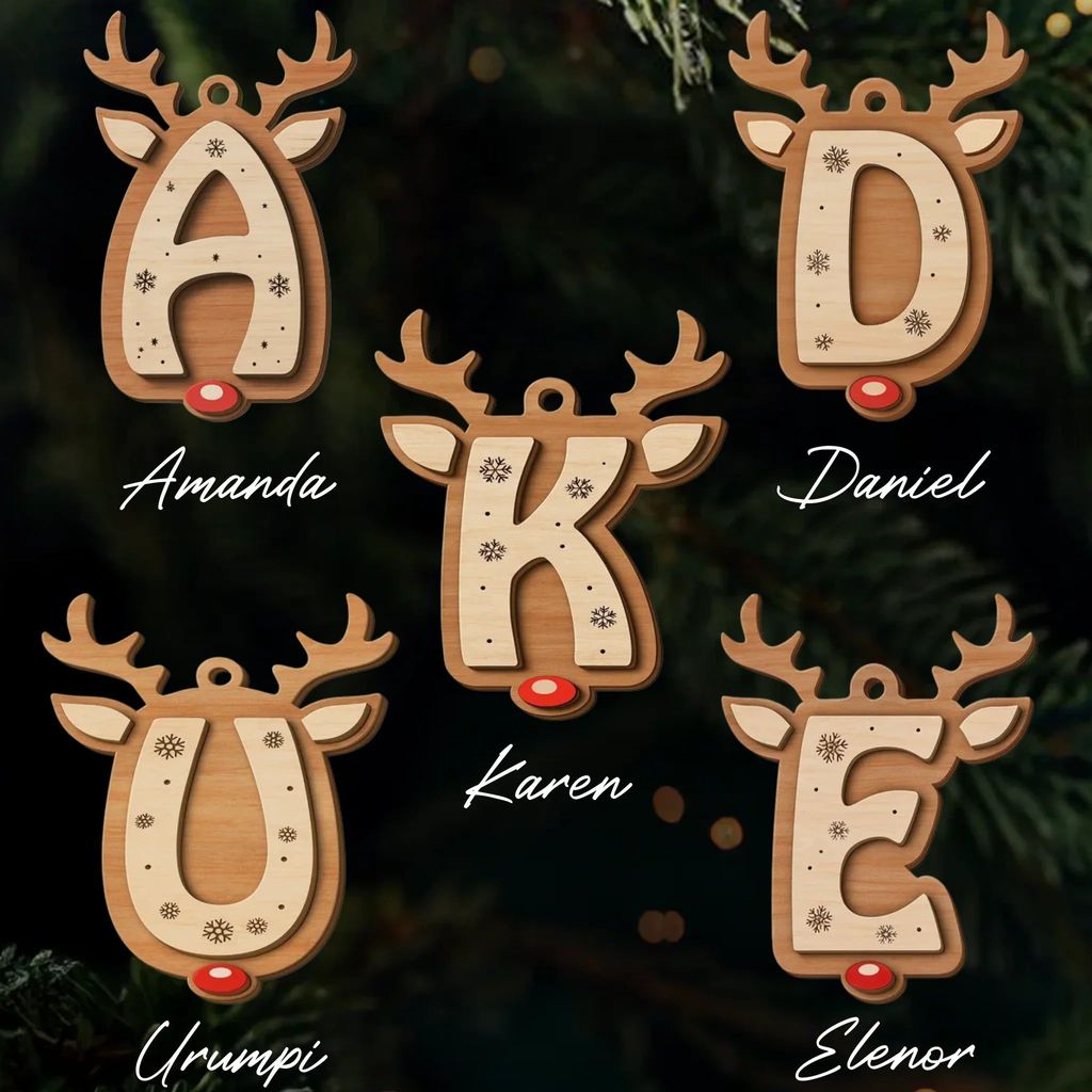 Personalized Wooden Reindeer Ornaments – Custom Double Layer Christmas Decorations for the Whole Family, Perfect Holiday & Birthday Gift