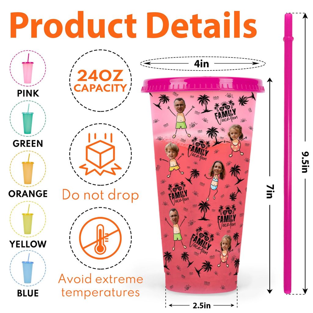 - 1 x Custom Photo Family Vacation Personalized Photo Color Changing Cup
