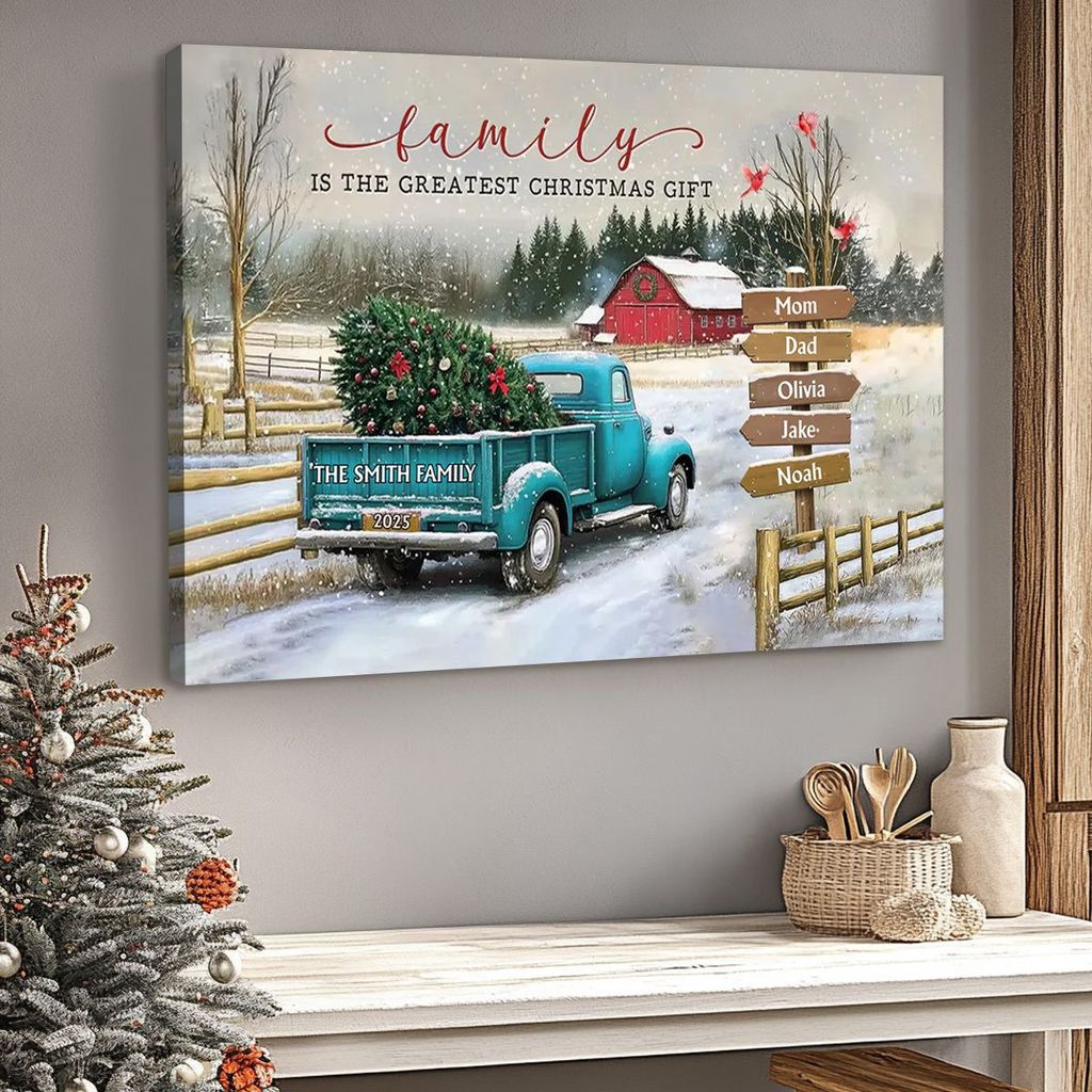 - 1 x Customizable Family Is The Greatest Christmas Gift Canvas Poster - Personalize Names & Year