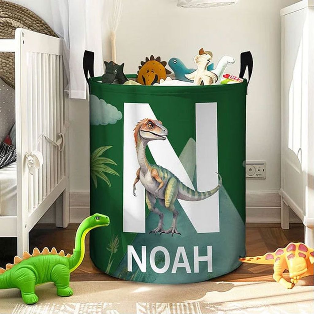 Customized Personalized Cute Dinosaur Large Waterproof Name Laundry Storage Basket