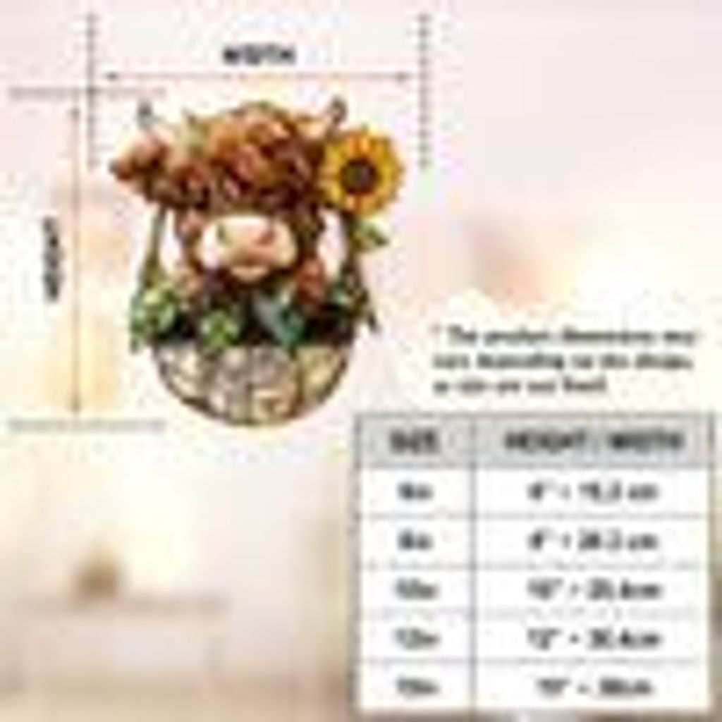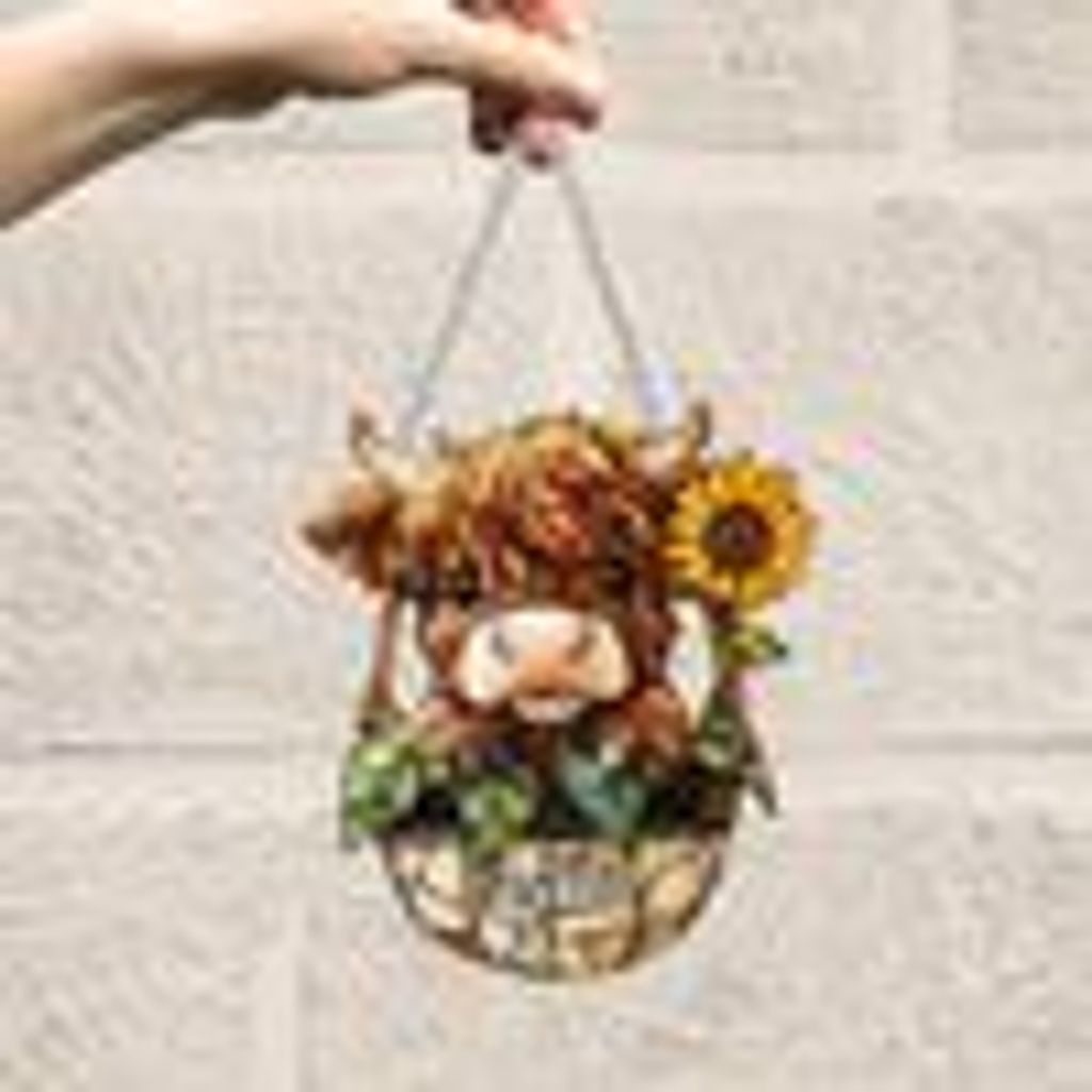 • 1 x Cute Highland Cow And Sunflower - Personalized Highland Cow Window Hanging Suncatcher Ornament