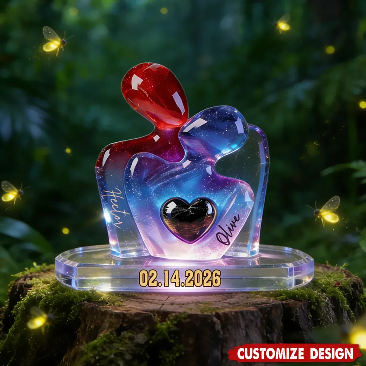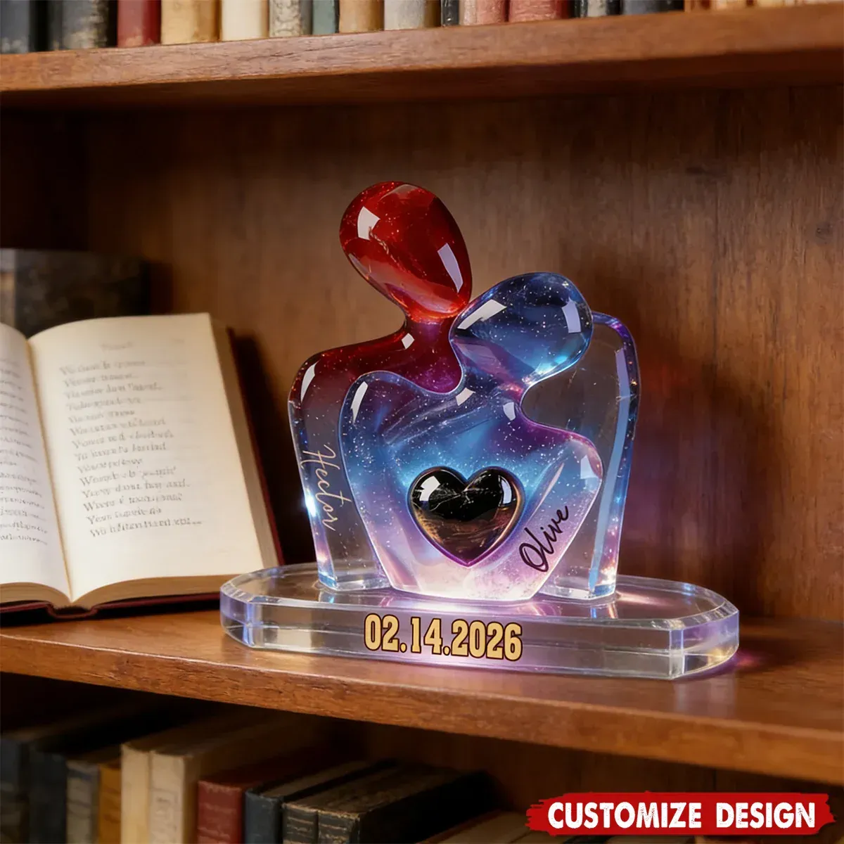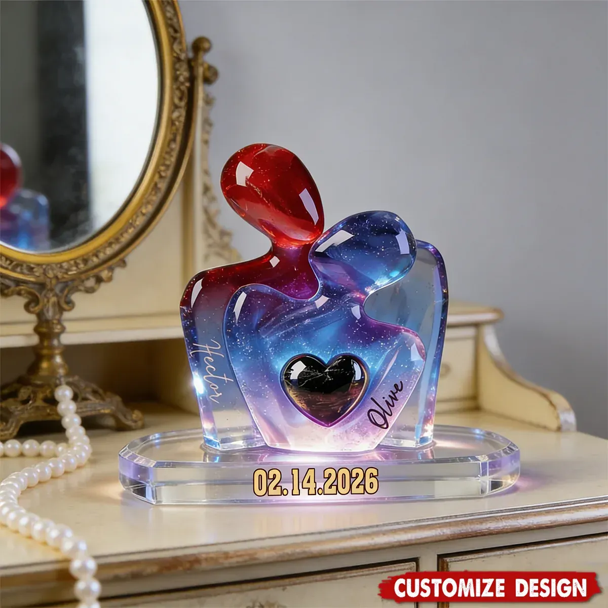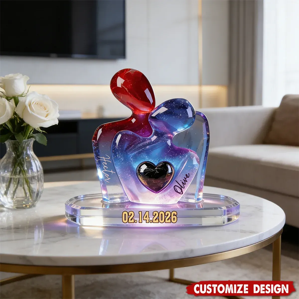 - 1 x Elegant Couple Statue with Heart Inlay - Personalized Couple Plaque