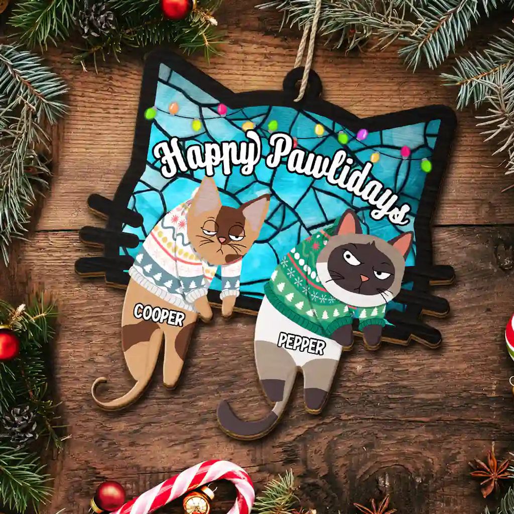 Celebrate the holidays with the Hanging Cats Meowy Catmas - Personalized Wooden Cutout Ornament, the perfect Gift For Pet Lovers, Pet Mom, Pet Dad, Cat Lovers, Cat Mom, Cat Dad on Mother's Day, Father's Day, Thanksgiving, Christmas, birthdays, and anniversaries. This ornament is a great way to add a personal touch to your holiday decorations, showcasing your love for your furry friends.