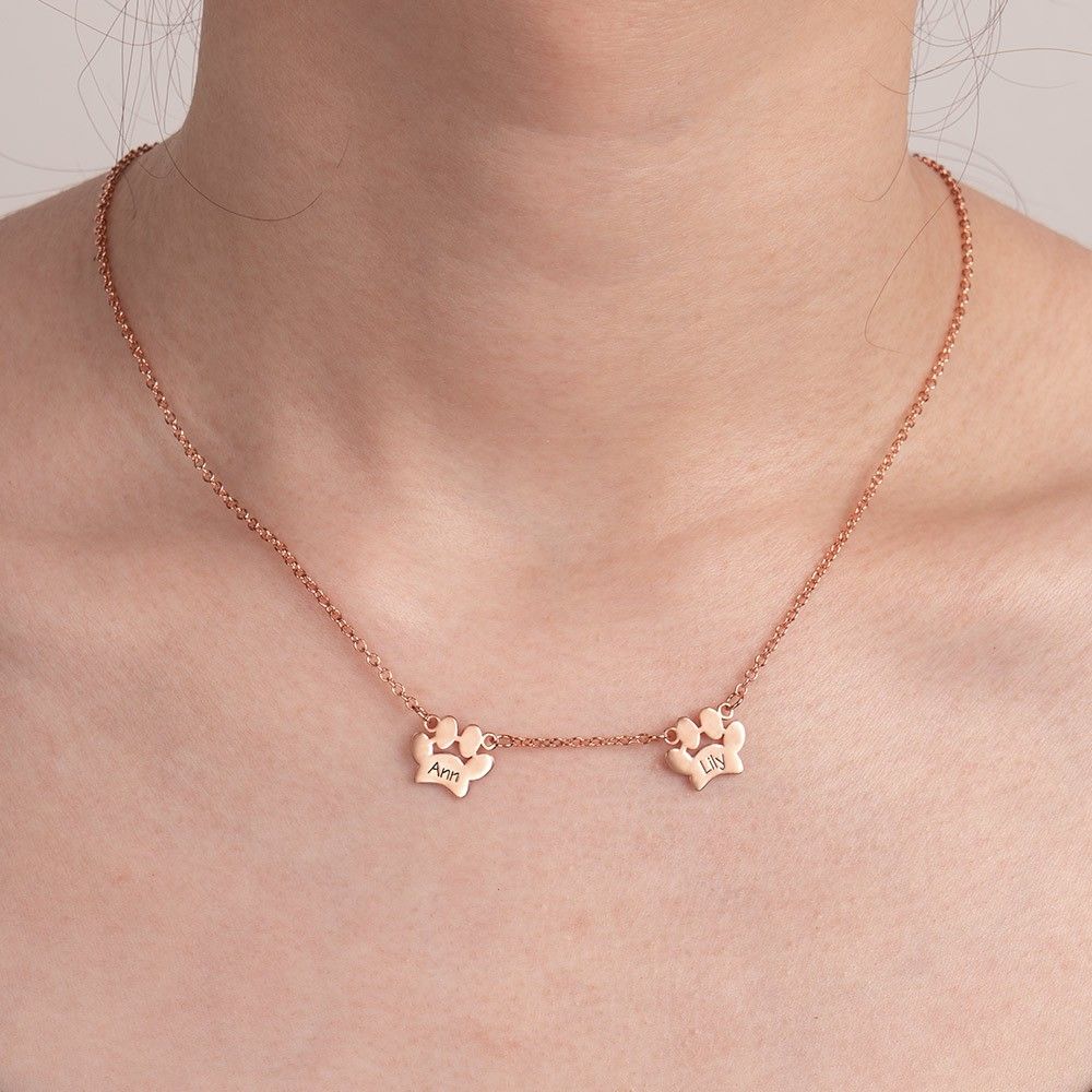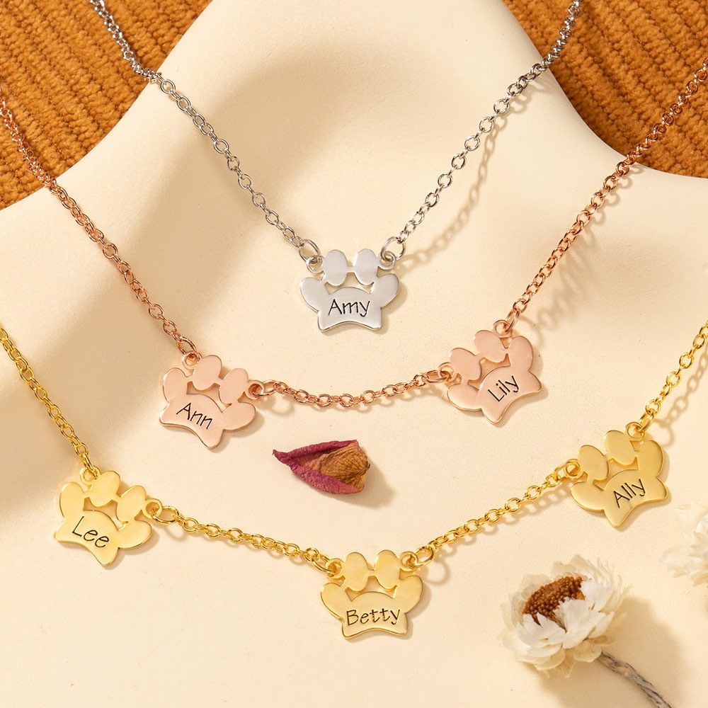 Personalized Custom Names Pet Paw Necklace Gift For Animal Lover