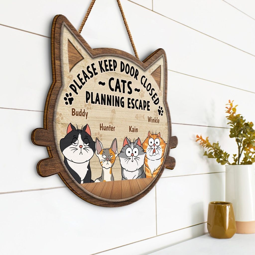 Cats Planning Escape – Personalized Custom Shaped Wood Sign 🐾 - Gift For Cat Lovers - Personalized Custom Shaped Wood Sign
