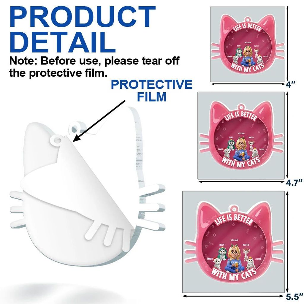 Celebrate feline love with the Life Is Better With Cats 3D Effect - Personalized Custom Shaped Acrylic Ornament. A heartfelt gift for cat lovers, cat moms, cat dads, men, or women, it’s perfect for Christmas, Birthdays, Mother’s Day, Father’s Day, or Thanksgiving.