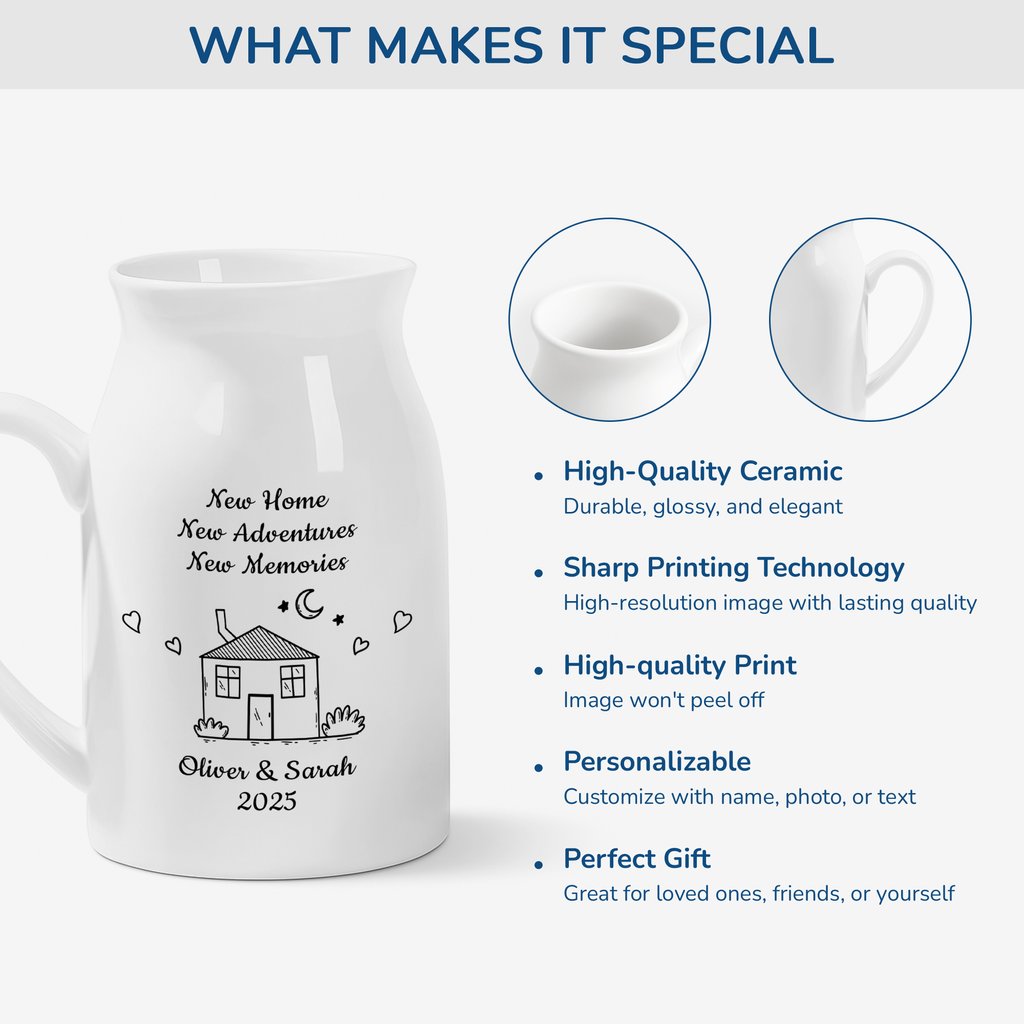 A loving and unique gift: This personalized ceramic vase is a heartfelt way to express love, gratitude, and cherished memories. Its elegant design and personal message make it the ideal gift for birthdays, Mother's Day, anniversaries, or simply to express your feelings.