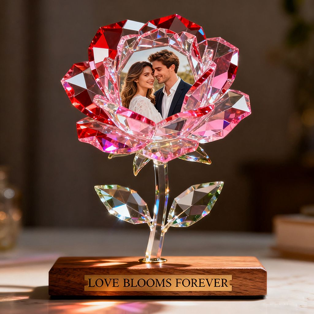 This custom crystal rose is more than just a decorative item; it's an ode to eternal love. Exquisitely designed and sparkling brilliantly in the light, it transforms your most cherished photos into dazzling gems, symbolizing your connection, unwavering commitment, and romantic love.