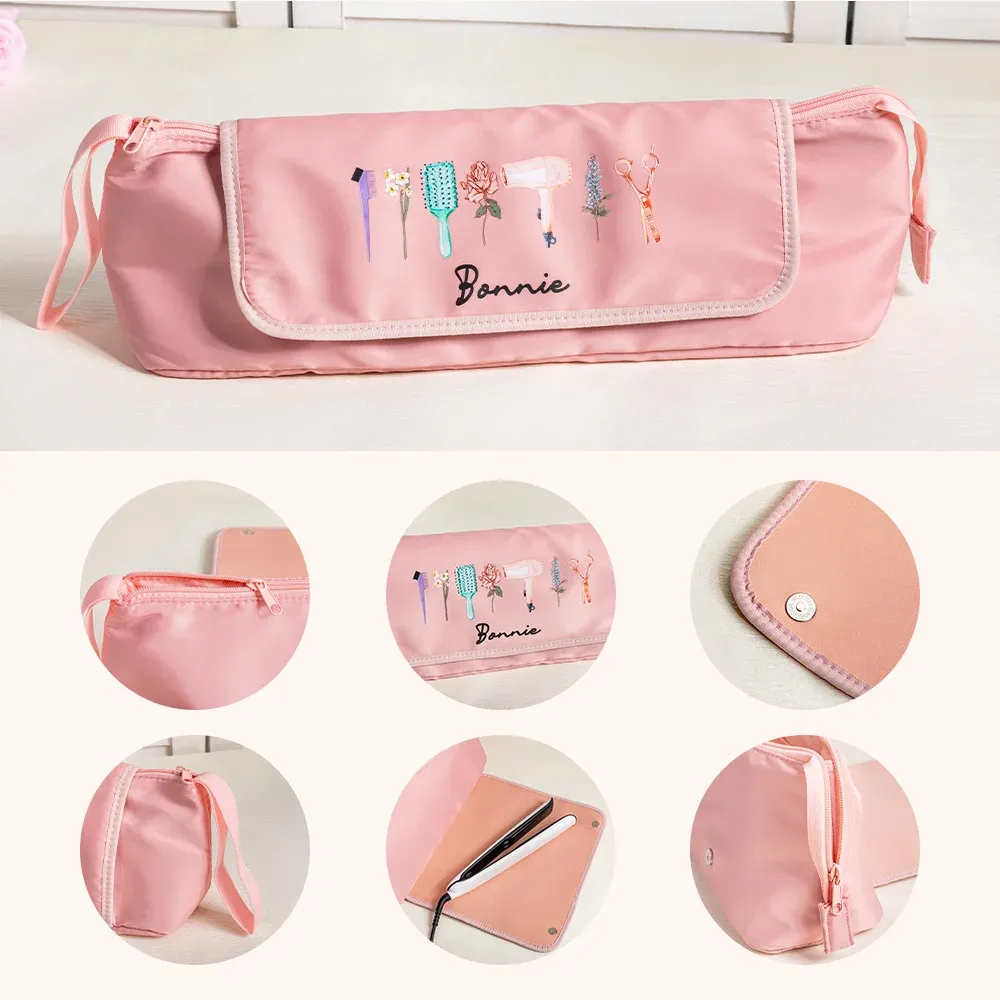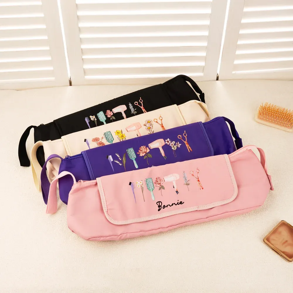 Inspired by the vibrant world of hairstyling, this storage bag showcases a one-of-a-kind design. It can be personalized with your name and three birth flowers, adding a touch of individuality. This unique customization, combined with the hairdressing-themed design, transforms the bag from a mere storage item into a statement piece.