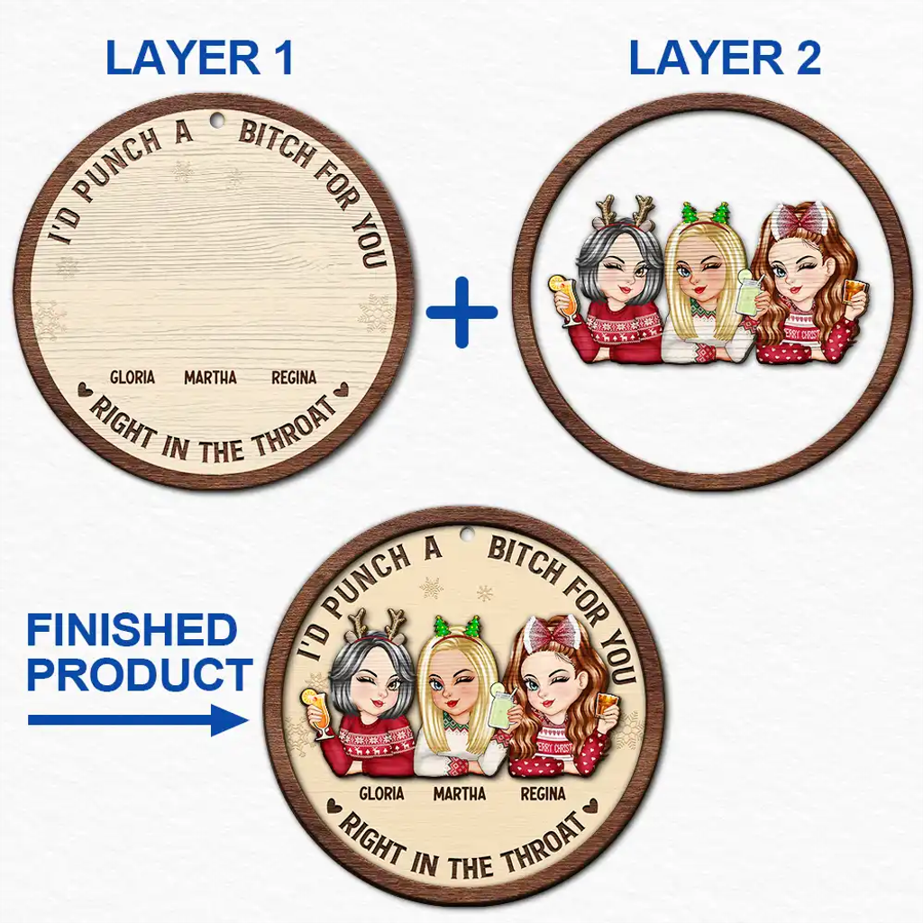 Right In The Throat Besties - Personalized 2-Layered Wooden Ornament